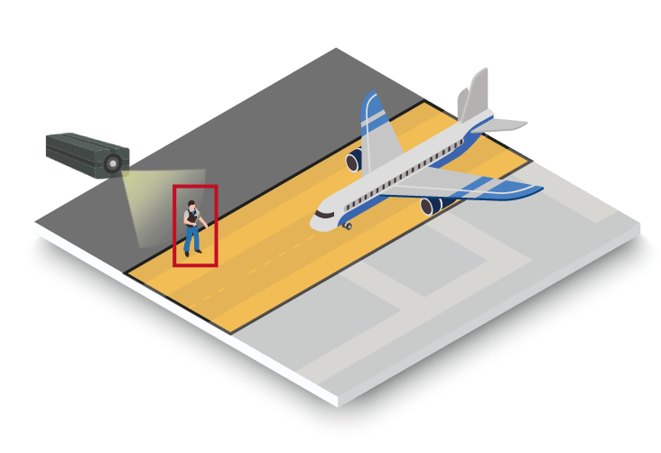 危険エリア侵入を検知いたします。AIカメラが人とモノを区別することができるので、危険エリアへの侵入を速やかに検知、管理者へ発報/通知いたします。また、現場ではパトランプを回し注意を促します。危険度に応じて発報ルールを自由に決めることも可能です。