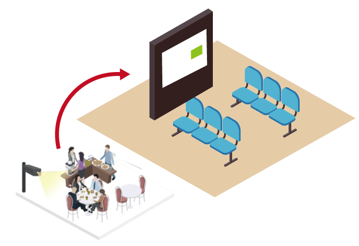 待合スペースにあるサイネージへリアルタイムのラウンジ・保安検査場の混雑状況を表示することが可能となります。