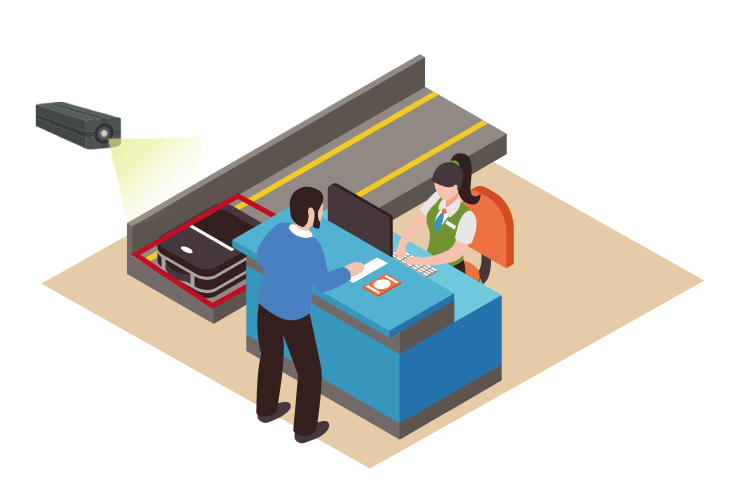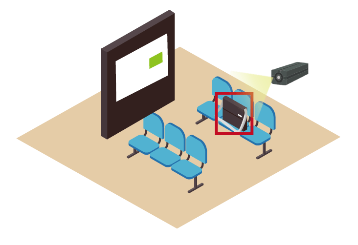 ヒトモノ行動認識により一定サイズ以上の手荷物を検知すると管理者へ発報・通知します。