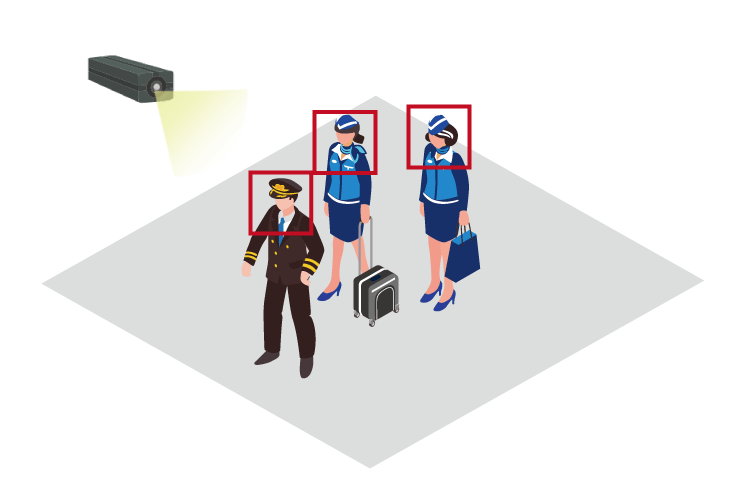 不審者の顔のデータをデータベースに登録しておき、各カメラ間で情報を共有しておくことで、来場した際も、検知を行うことが可能になります。