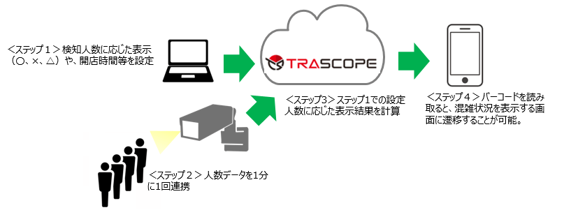 ホテルの朝食会場であるカフェテラス「カメリア」における混雑緩和を目的として、お客様がご自身の携帯端末から混雑状況を確認できる混雑状況検知システム「TRASCOPE-AI」を採用。設置の簡易さとバーコードを読み取るだけでお客様ご自身がご宿泊の部屋から朝食会場の混雑状況を確認できるという手軽さが採用のポイントとなった。