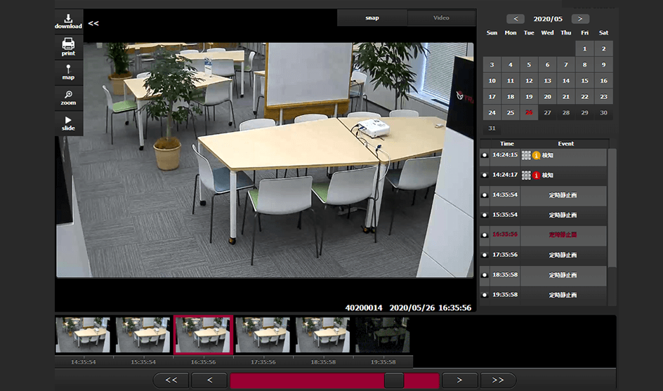 | サムネイル検索 | タイムラインに並んだサムネイル画像の絞り込みから動画を取得・閲覧します。 |