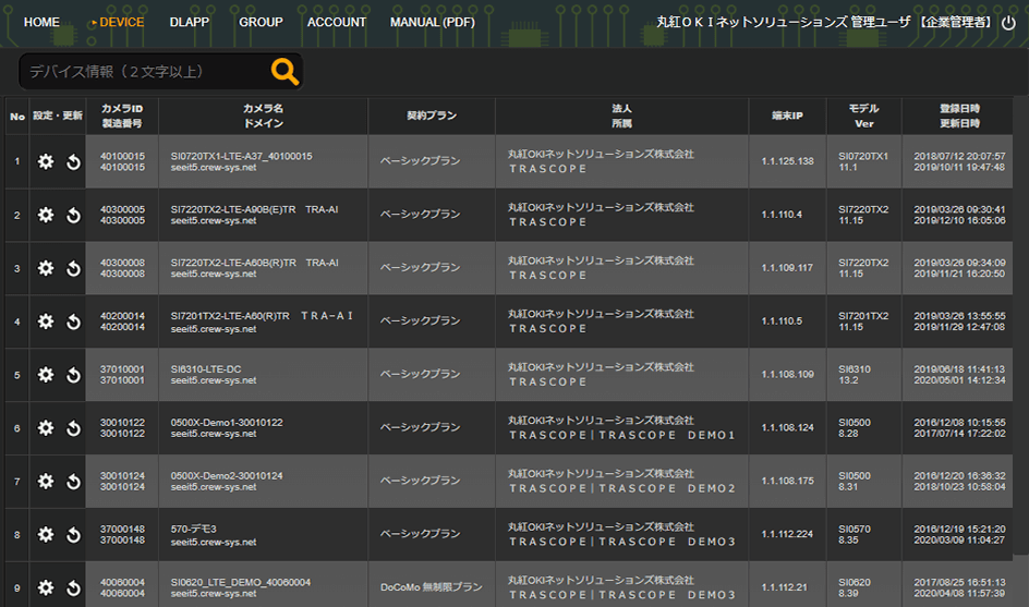| カメラ操作の履歴 | 問い合わせ画面 | カメラへの「問い合わせ」操作と 実行の進捗・履歴情報 |